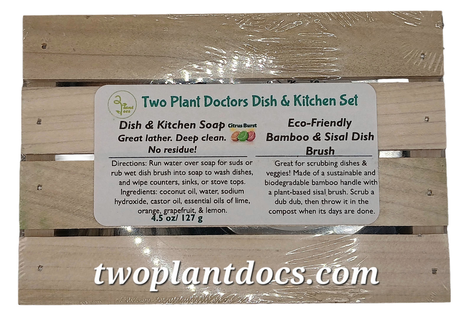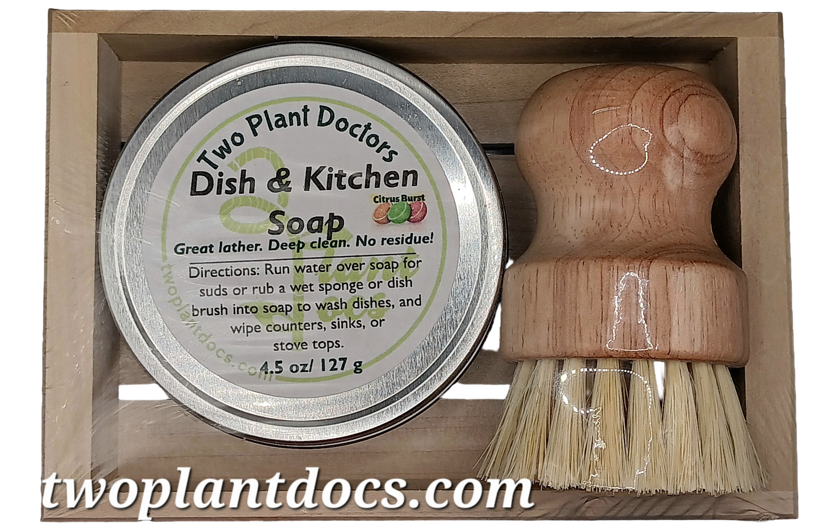 4.5 oz tin plus a bamboo & sisal scrub brush in a sustainably made soap tray for $15